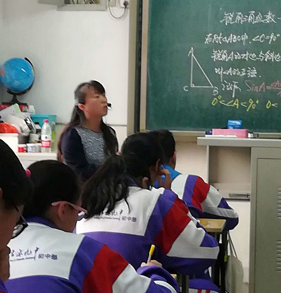 第四节又听了于老师的《锐角三角函数--正弦》,课堂上于老师通过高跟鞋穿着舒适的高度为引例导入课堂学习,复习了直角三角形的知识后,再从学生手中常见的三角尺入手,发现其边与30度角的关系,由学生类比得出45度60度的边角关系,进行总结得出角度变化,对边与斜边的比值不变的结论,从而得出本节课内容,接下来老师用几何画板验证,