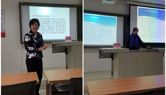 许振梅:从青年教师执教的《颐和园》《古诗两首》课堂上看到了对学生参与、表达的关注,看到了大语文观的落实。不局限于教材,将生活与语文相联系,注重资源支撑补充,既帮助学生把文本读厚理解更深刻,更使学生学会学习资源的整合不读“死书”。落实了杨红兵老师讲座中提到的“知识与能力只有一步之遥,这一步就是实践”。王琴音、李爱霞、张景芳三位老师关于学困生转化、团队建设的讲座从小处着眼引发大家热烈的讨论共鸣。 《学记》中说"相观而善之谓摩",学习需要与别人切磋观摩,更需要自我的琢磨。
