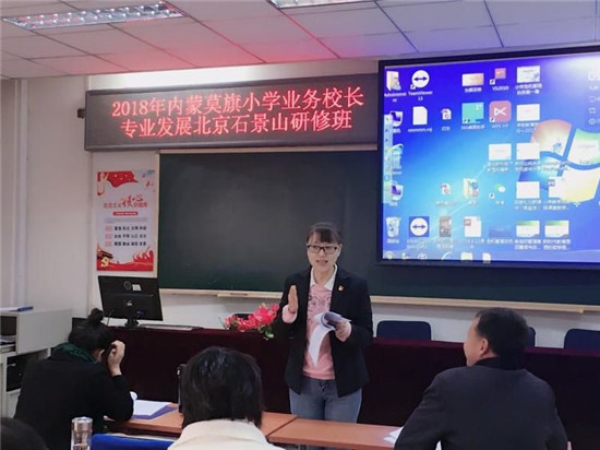 在研修班开班仪式上,北京石景山区教委、教育分院的领导表达了欢迎之情,并表示会把石景山区教育的做法毫无保留地分享给大家。莫旗教研员许振梅老师代表学员发言,真诚感谢石景山区对莫旗的教育帮扶,表达了莫旗教育人对于做好教育的守望和追求。