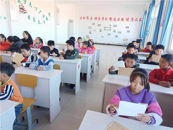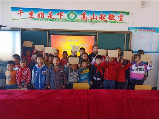 在接到信的第一时间,汐子小学负责扶贫工作的丛日光主任就组织学校30名建档立卡学生到会议室集合,向孩子们传达了这一喜讯,并把这13封带着关爱的信件发放到孩子们手里。