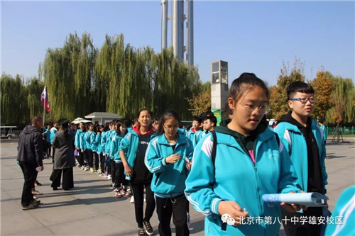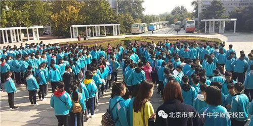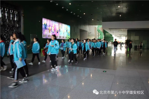 10月19日,位于白洋淀畔的北京市第八十中学雄安校区,举行了为期一天的游学活动,目的地是北京市第八十中学望京校区和中国科学技术馆。此行的目的是丰富初三学生的生活,激发学生的学习兴趣,开阔学生眼界,为国家培养更为优秀的、具有更广阔视野的社会主义建设者。