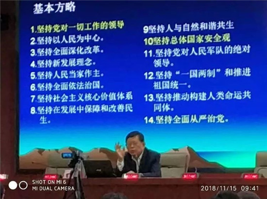 工作是辛苦的,惊喜也是有的。一次党课学习竟然成了我平生最喜欢的一堂思想政治课。王炳林教授(教育部高等学校社会科学发展研究中心主任,北京师范大学教授,博士生导师,兼任中华人民共和国国史学会副会长)高屋建瓴、深入浅出、风趣幽默、形象生动地讲述,把习近平新时代中国特色社会主义思想讲得妙趣横生,使人听了意犹未尽。
