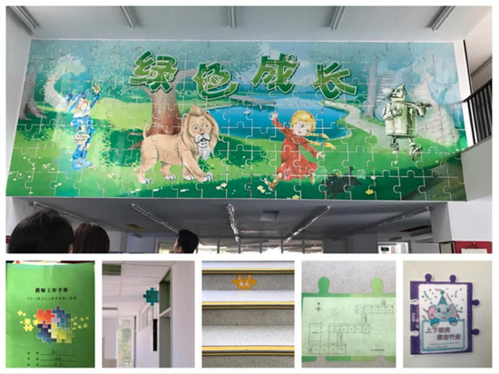 在教学楼内随处可见的拼图,也让我们感到非常好奇,而张校长解答了我们的困惑,这是校园文化建设中的“拼图文化”,旨在通过各种颜色形状的拼图,让大家牢记学校是一个团队,团队合作需要相融相合,而这各种颜色各种形状就如每个人,教师之间要凝聚成一个集体,师生间要懂得因材施教,做到不丢弃不放弃任何一块,如果丢弃任何一块便不会完整。拼图文化引发了我深深的思考。相聚就是一团火,散开就是满天星,我是一个刚刚播下的火种,学生们就是需要我去点燃的火苗,我要多多学习,终有一天,我也会看到满天的繁星闪耀。