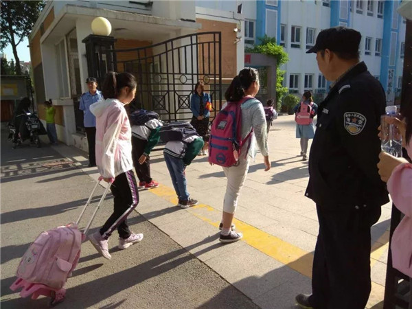 我们早早地来到学校门口,驻足观看校园门口的文化石,意外地让我拍摄到了一幅精彩的画面:学校领导站在大门两侧,微笑地迎接着每一个孩子;孩子们迎着朝阳,欢快地来到学校门口,立正站好,恭恭敬敬地向老师鞠躬问好,一切都那么自然。孔子曰:圣贤者,未有不尊师者也。万年花城小学的孩子们,每天从踏进校园那一刻起,内心就已经牢记:师道既尊,学风自善。