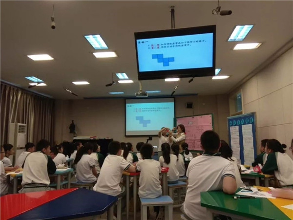 首都经贸大学附属小学王宁老师执教的《正方体的展开图》,教师设计了三个活动:活动一:1、想一想,如何将纸盒剪成如下图所示的样子?2、剪一剪,想好后将纸盒剪开。活动二:请你提出一个值得思考的数学问题。活动三:1、想一想,正方体的展开图还有什么情况2.画一画,想好后在方格纸上画出来。3、写一写,标出相对的面。4、折一折,借助想象或是手势验证。在每次活动之前,王老师都建议大家,先想一想,当头脑中有了一定的思路以后,再动手去剪,凡事要三思而后行,才能事半功倍。为了培养学生良好的空间观念,先让学生根据教师提供的平面图去剪,然后小组探究新的展开图,最后又多次让学生把平面展开图进行视图还原,所有的这些活动,为学生的空间观念的形成奠定了良好的基础。