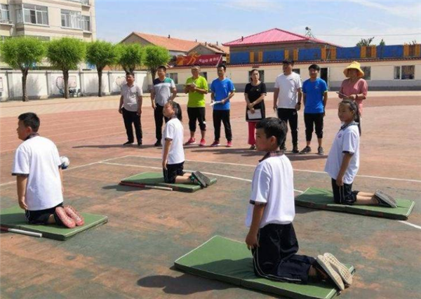 讲解示范之后,同学们开始练习。同学们练习时,米校长认真观察每一位同学的动作,并给予纠正。同时找出共性错误,重点改正。
