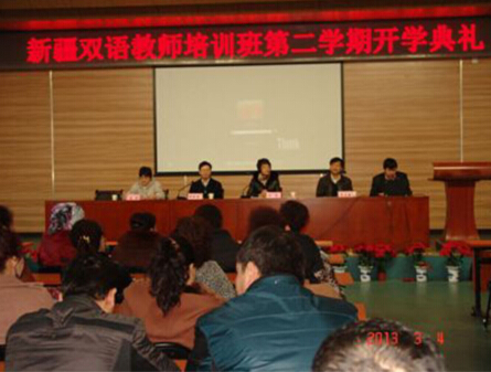 初春伊始,新疆双语教师培训班迎来了他们新学期的开始。2012年新疆双语骨干教师培训班和2012年新疆和田双语教师培训班分别于3月4日和8日举行了第二学期开班仪式。副院长钟祖荣出席了活动,并分别提出要求和希望。