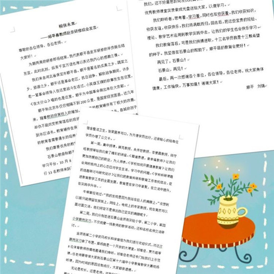 郝显军强调了对口扶贫工作的重要意义,回顾了与宁城和顺平相互学习和借鉴的友好历程,分析了三地的优势,并对后续相关工作做了重要指示。周玉华从培训者和学习者的不同角度,分享了石景山分院和自己培训学习的经验,提出了自助研修和同伴互助的学习要领,并对今后双方进一步的合作提出了希望。聂晶主持结业仪式,她用简短而震撼人心的案例,表达了对宁城和顺平教育工作者的殷切期望,告诫大家要不忘初心、相信未来!