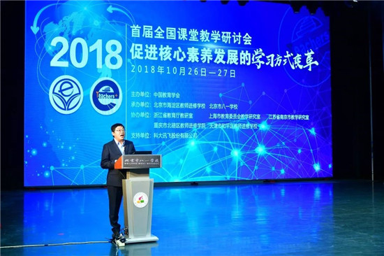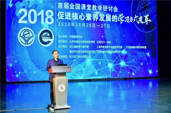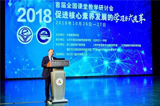 2018年10月26—27日,中国教育学会“首届全国课堂教学研讨会”在北京市八一学校举行。会议由中国教育学会主办,北京市海淀区教师进修学校和北京市八一学校承办,上海市教育委员会教学研究室、浙江省教育厅教研室、江苏省南京市教学研究室、重庆市北碚区教师进修学院、天津市和平区教师进修学校共同协办。