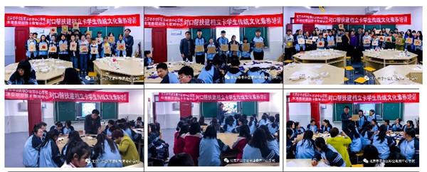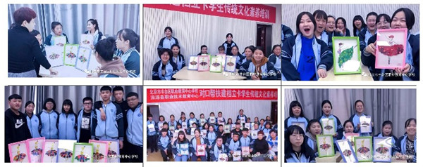 在对120名建档立卡户学生开展的五天传统文化素养培训中,景泰蓝画制作、巧手编织中国结、衍纸画制作和薰衣草香囊制作课的授课老师们详细介绍其中蕴含的中国传统文化知识,耐心细致地手把手指导。学生们认真聆听,积极参与,在创作中感受传统文化,在学习和交流中传承传统文化。景泰蓝画、中国结、衍纸画、香囊一个个手工作品为学生们了解中国传统文化打开了一扇窗。
