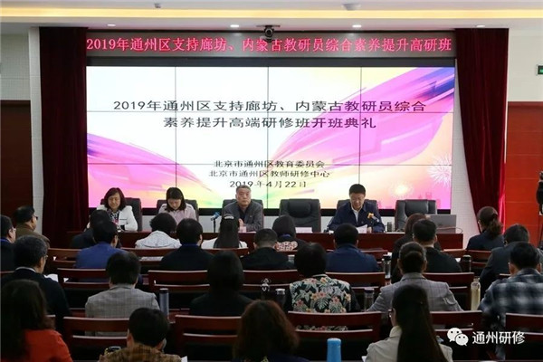 为深入贯彻落实通州区教委与内蒙古翁牛特旗、奈曼旗和科右中旗签订的《帮扶协议》,以及《京津冀教育协同发展行动计划(2018-2020年)》,着力加强与支持、协同发展地区的教育交流对话,2019年4月22日至26日,通州区将承办“2019年廊坊、内蒙古教研员综合素养提升高端研修班”。