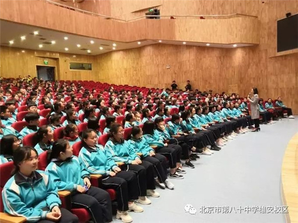 此次游学的第一站是北京第八十中学望京校区。八十中师生对客人的到来表示热烈欢迎。在学校报告厅中,同学们观看了八十中学校宣传片。那薪火相传的校园文化,那与时俱进的教学创新,那一道道辛苦耕耘的教师身影,那一张张青春洋溢的灿烂笑脸……在短短的十几分钟的时间里,感受着几十年间学校的发展与变迁,感受着这所学校深厚的底蕴与崭新的魅力。