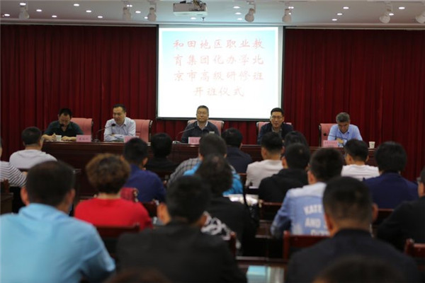 为了尽快提高和田地区职业院校专业教师的实训技能水平,北京市成立北京讲师团支援和田职业教育,开设第一期北京专业师资高级研修班。北京市教委首次从北京黄庄职业高中、金隅科技职业学校和北京电子科技职业学院三所院校选派了六位专家不远万里来到和田送教。4月24日,和田技师学院承办的第一期北京高级研修班培开班。在技师学院援疆的康柏利,苑红,杜燕三位老师亲自承担了班主任管理工作,经过紧张的一个月培训学习,到5月22日培训班圆满结业。