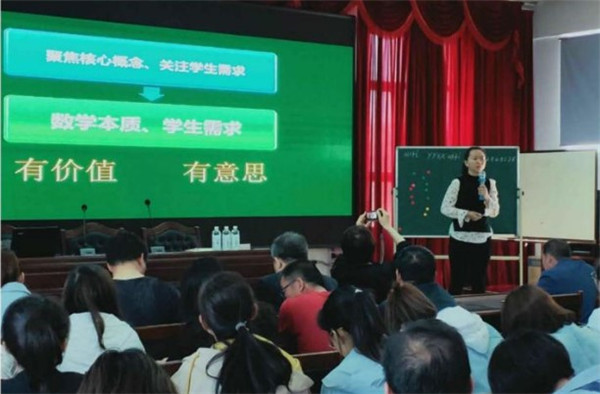 刘静、朱洁两位专家分别以《追寻数学问题驱动的生命课堂》和《聚焦概念,关注需求,提高数学课堂教学实效》为主题,对300余名中小学数学教师现场指导,两个场地座无虚席,教师们时而蹙眉思索,时而微笑颔首。