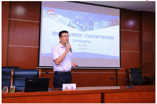 侯光校长以《发挥国企办学优势 打造祥龙产教共同体》为主题,为贵州培训团做了一场求真务实的产教融合实践经验培训,为成员们详细介绍了北京市商业学校的发展模式,以及祥龙公司作为国家首批“产教融合型企业”试点单位的发展历程和成功经验,学员们认真聆听、收获颇丰。