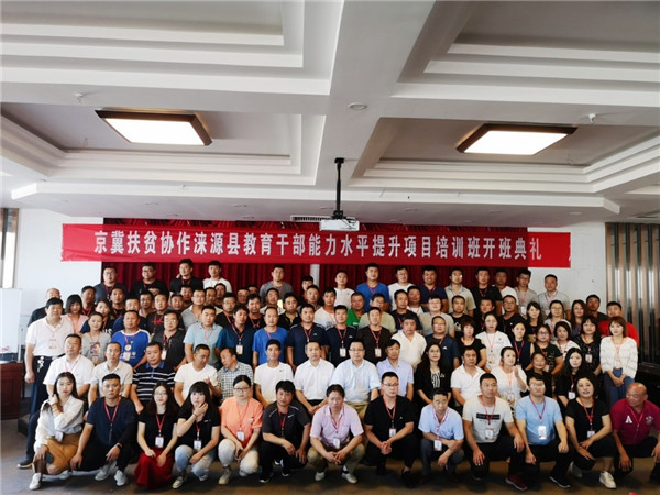 2019年7月15日,京冀扶贫协作涞源县教育干部能力水平提升项目培训班开班典礼在涞源县举行。丰台区教委作为此次培训的专家支持团队,在区教委杨联文副主任的带领下,丰台教科院副院长简作军、张巧参加了此次开班典礼。涞源县教育局局长孙克峰、教师发展中心校长、局长助理任宝桥等领导以及涞源县中小学德育干部100人参加。