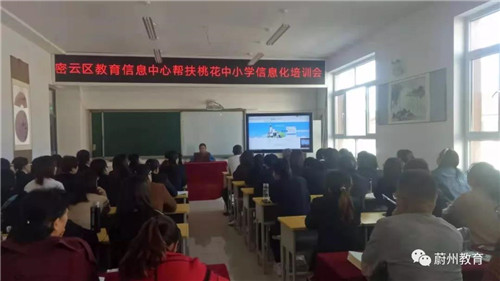 培训结束后,密云区教委张学虎等一行八人先后深入桃花镇中小学、常宁中心校和代王城中学进行了参观调研,并就云平台的规范使用现场进行了培训指导。