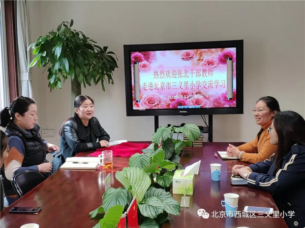 按照北京市西城区和河北省张北县确定的重点帮扶项目。北京市西城区三义里小学与张北县民乐街小学建立了帮扶协议。2019年11月5日至7日,三义里小学迎来了对口帮扶校——河北张北县民乐街小学的7位干部教师,到校进行为期3个工作日的跟岗学习。