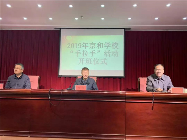 送教活动中,北京市教委职成处正处级调研员杨颉、新疆和田地区教育局副局长王若洪出席了2019京和职业学校“手拉手”项目开班仪式。北京市教委扶贫协作与支援合作处处长王力志和和田地区教育局副局长王若洪慰问丰台区职业教育中心学校送教干部,考察项目实施与成效。