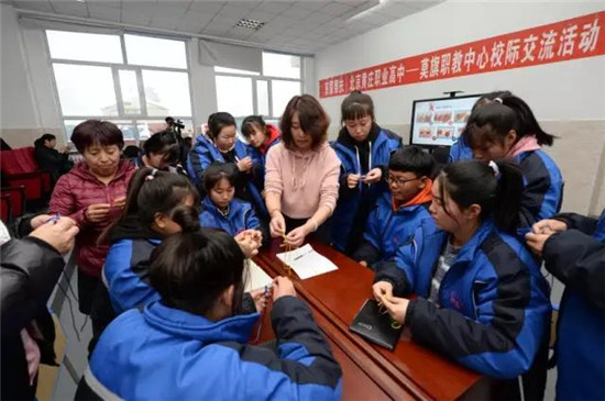 下午,杨红老师为莫旗职业教育中心的学生们精心准备一堂动手培训课——平安结!学生们学的非常认真,积极与杨老师互动,最后每一名同学都完成了自己的作品。